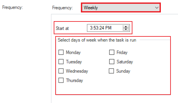 * *Select days of the week when the task is run*: You can check the specific days of the week on which you want the schedule to run.