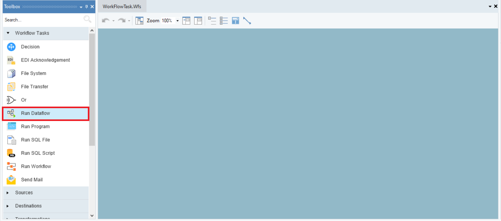 Drag and drop the Run Dataflow task object onto the workflow designer.