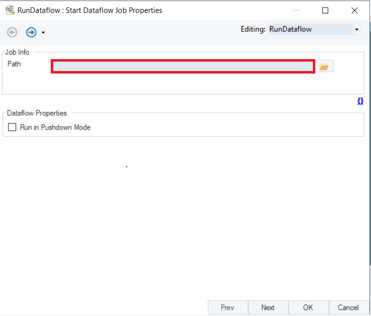 Path: This is where you will select the path to the dataflow that is to be used in this Workflow.