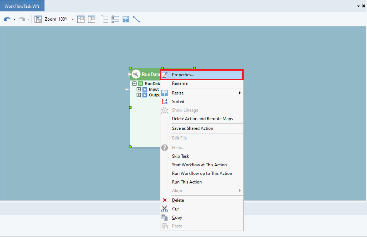 Configure the object by right-clicking on the object’s header and selecting Properties from the context menu.