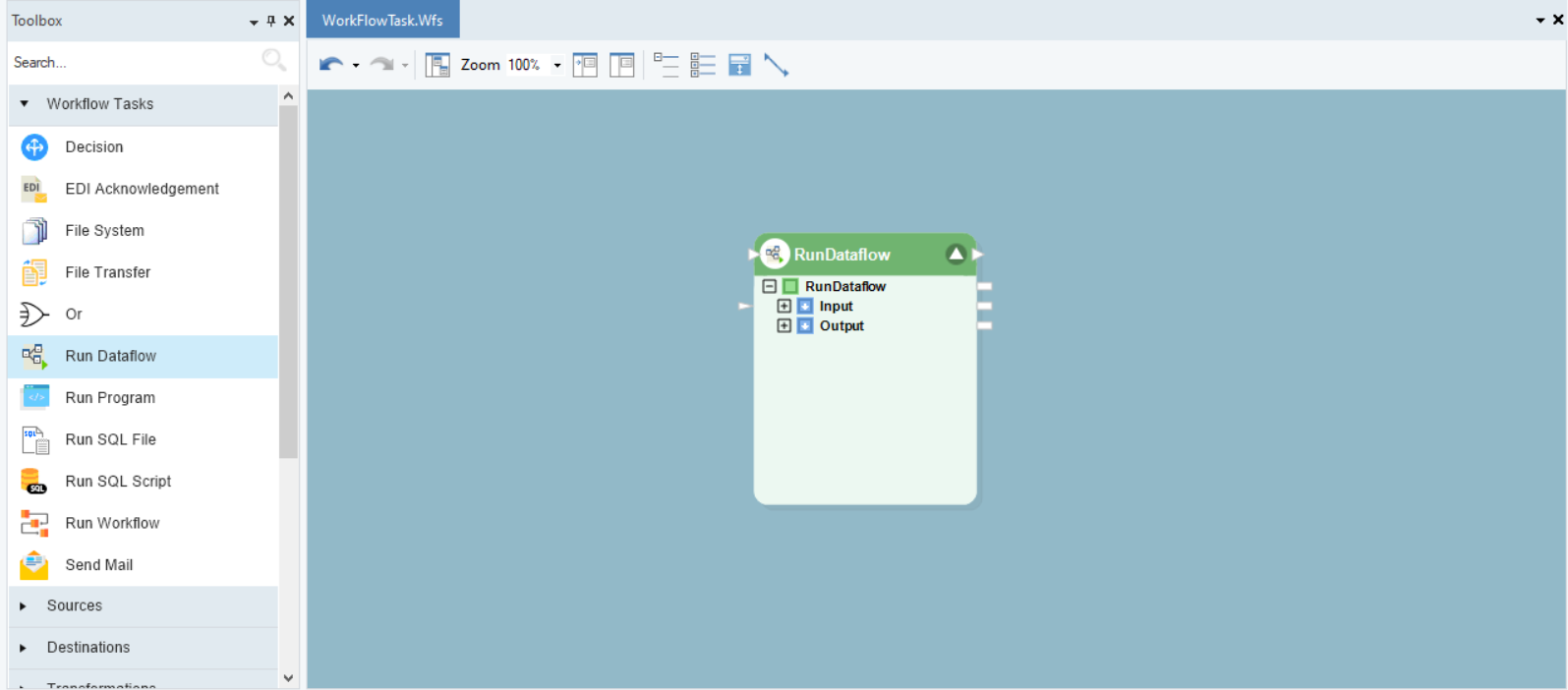 The Run Dataflow task is used to execute a dataflow as part of a workflow. Multiple Run Dataflow task objects can be employed as part of a workflow, to orchestrate a data process.