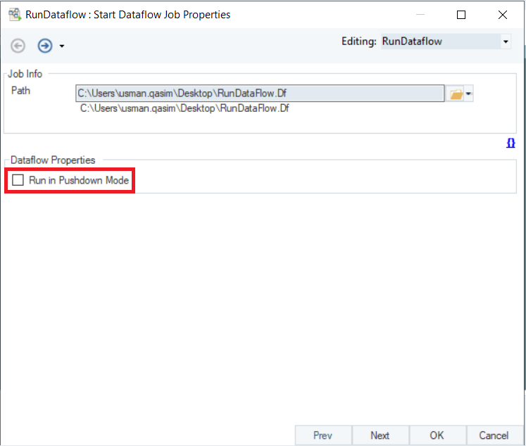 Now, let’s take a look at the checkbox in the Start Dataflow Job Properties window.