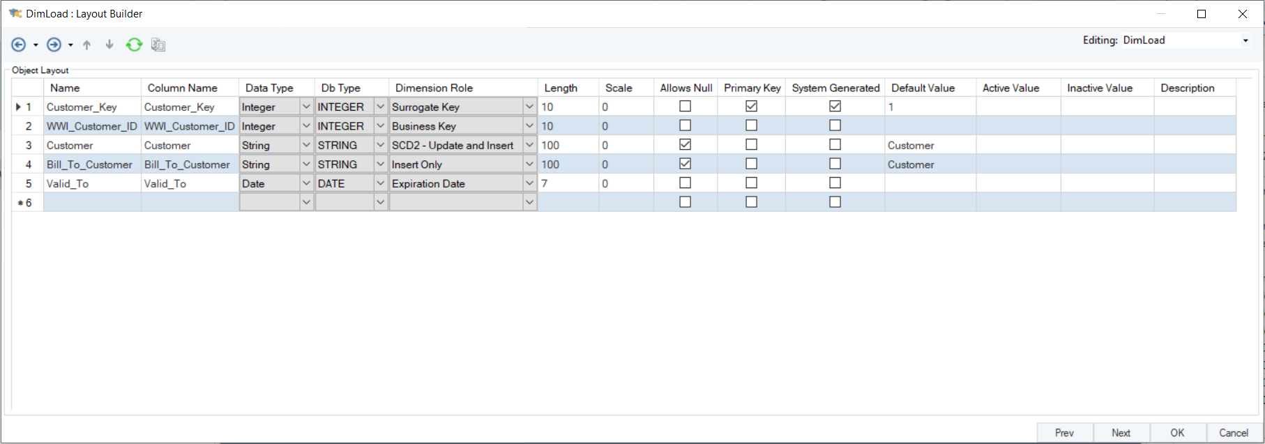 Here, you can view the layout of the dimension table.