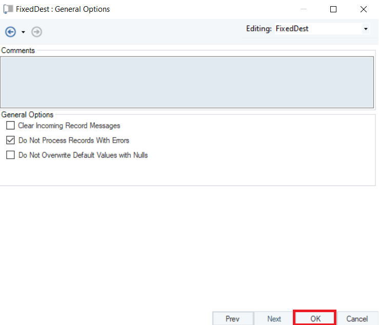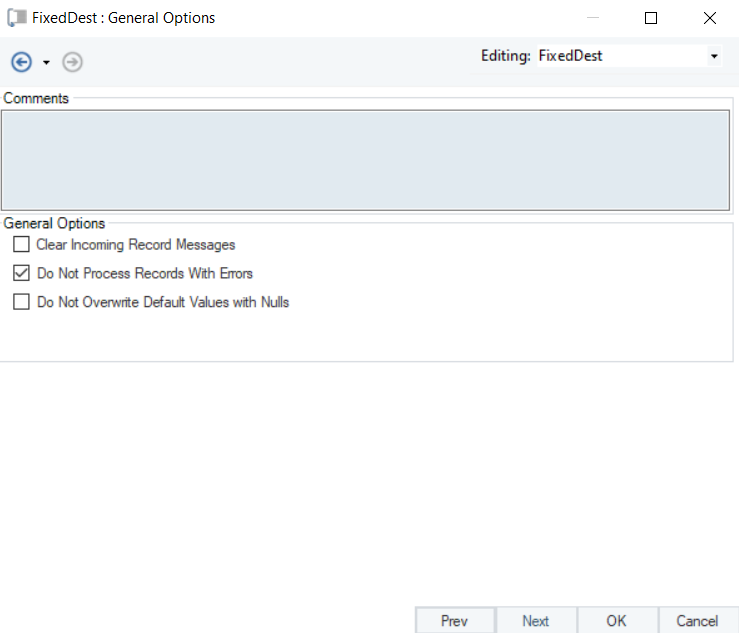 * *General Options* are given, which relate to the processing of records in the destination file.