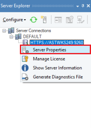 To view the server properties, right-click on the connected server and select *Server Properties*.