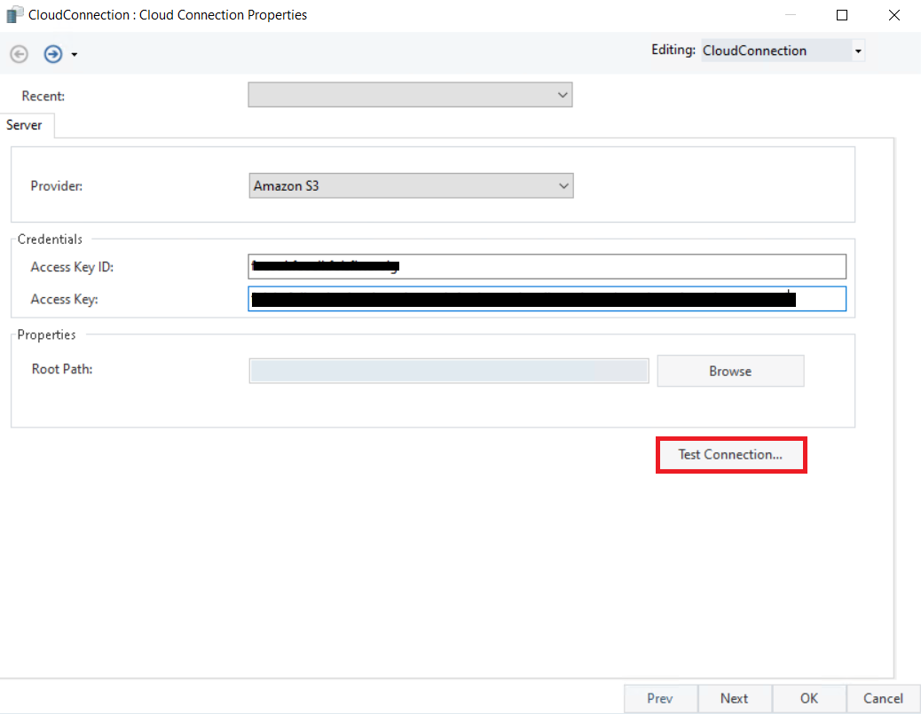 The Cloud Connection Properties window will open. Select Amazon S3 as your cloud provider from the Provider drop-down.