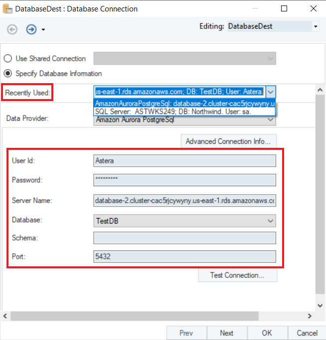 2. Connecting to Amazon Aurora PostgreSQL databases in Astera.