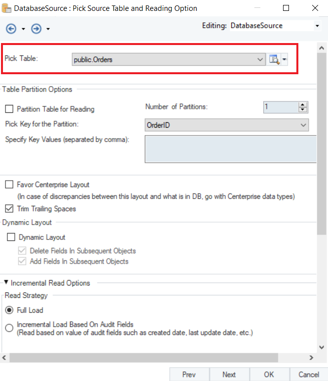 1. Here, you can Pick Source Table and specify different Reading Options for your Amazon Aurora database.