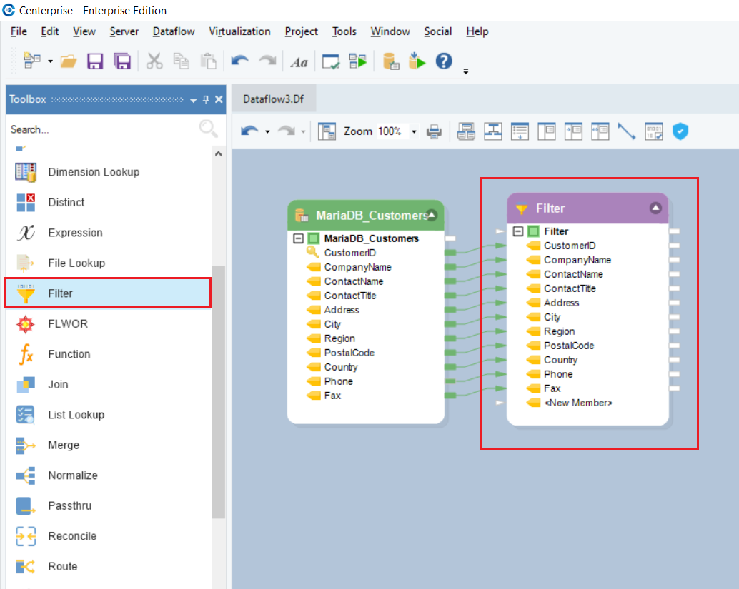 We will use the Filter transformation to filter out records of customers who are Sales Representatives.