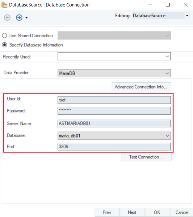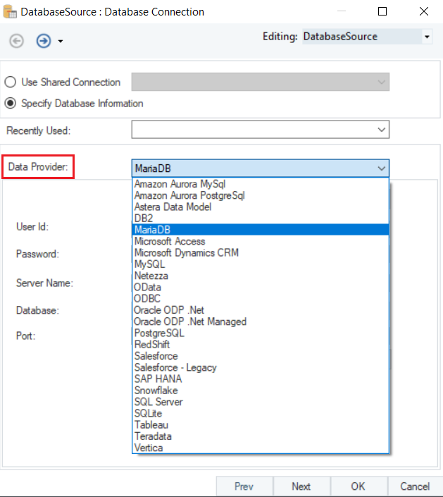 Connecting to MariaDB in Astera.