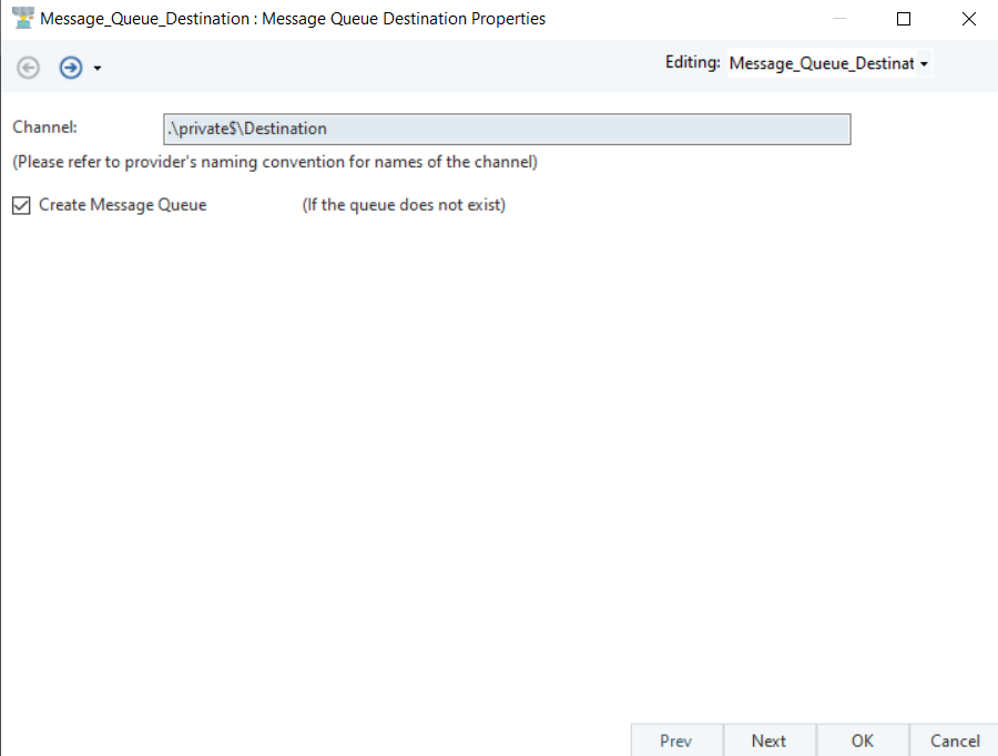 Create Message Queue: Selecting this checkbox will create a message queue if it is not already created.