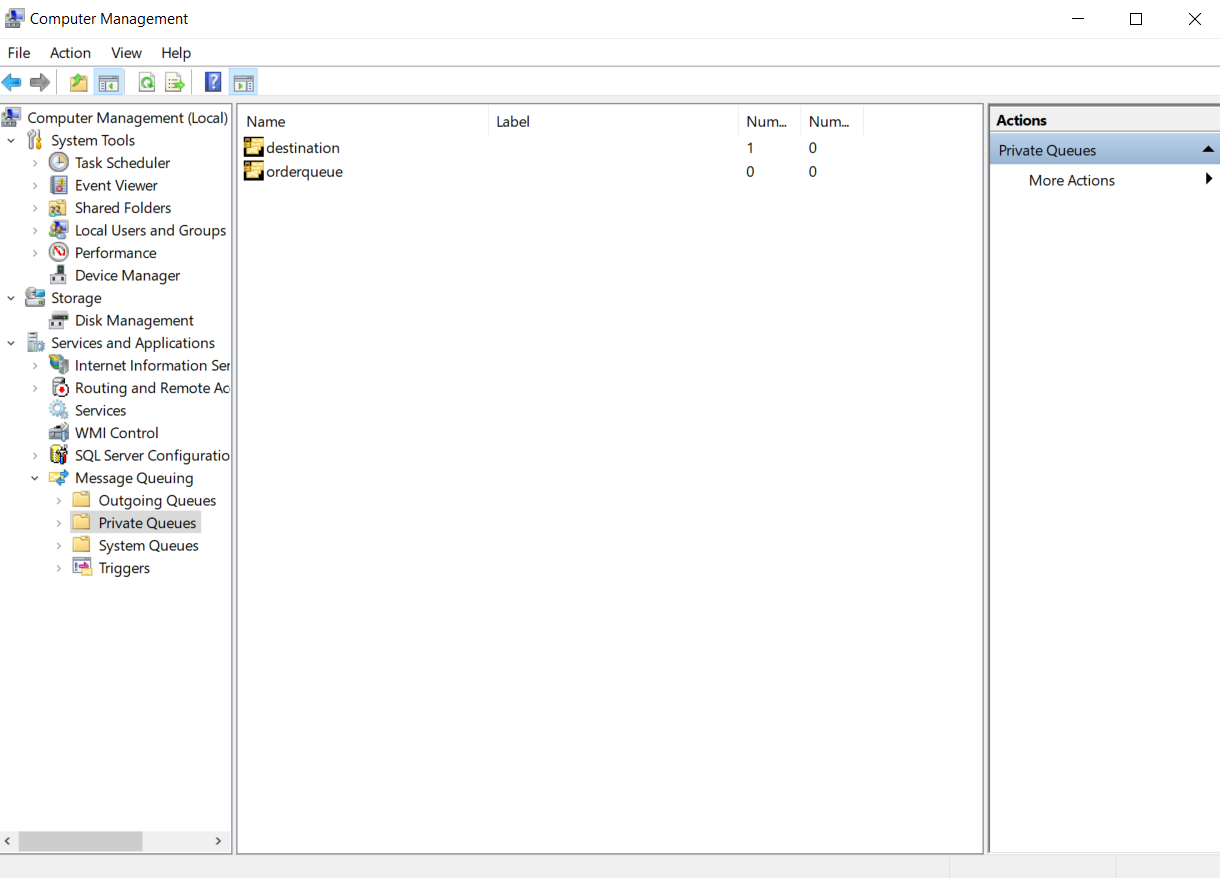 Once the message queue package has been installed, head to the Computer Management application on your machine.