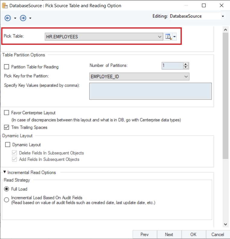 We will be using the Database Table Source object to source data from the Oracle database.