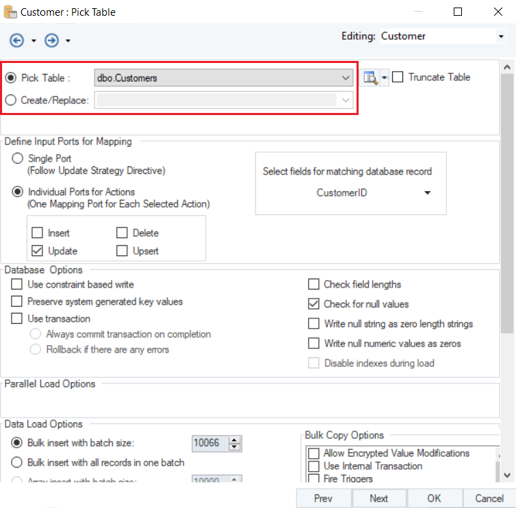 Note: In this case, we will pick the Customers table which is the same as the source table.