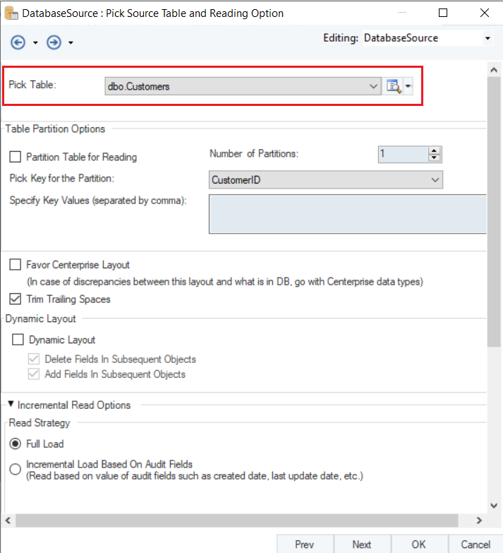 Here, you can Pick Source Table and modify Reading Options for your PostgreSQL database.