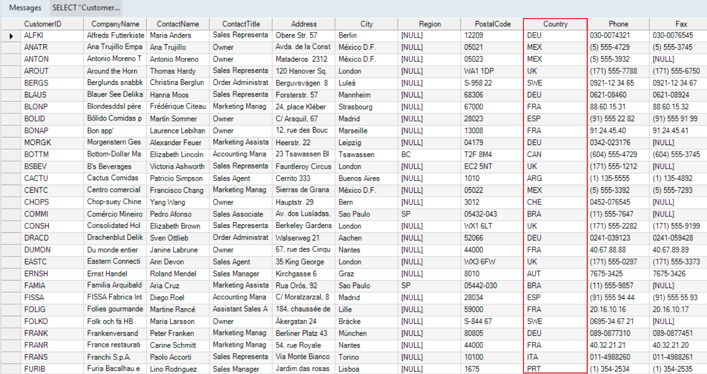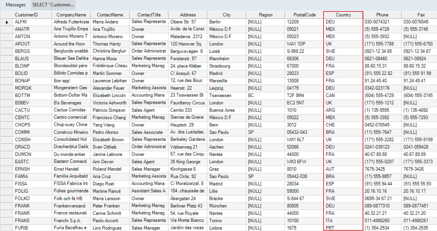 Now, If we preview the data in the database table, we can see that the country names have been replaced with country codes and the data has been written into the destination table.