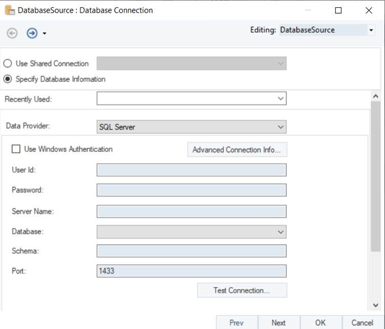 We will be using the Database Table Source object to source data from the PostgreSQL database.