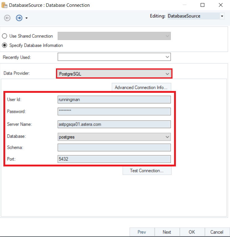 PostgreSQL is an open-source relational database management system that stores data workloads. It helps in managing all kinds of datasets with its extensive range of features. Astera provides connectivity to PostgreSQL databases through its database objects.