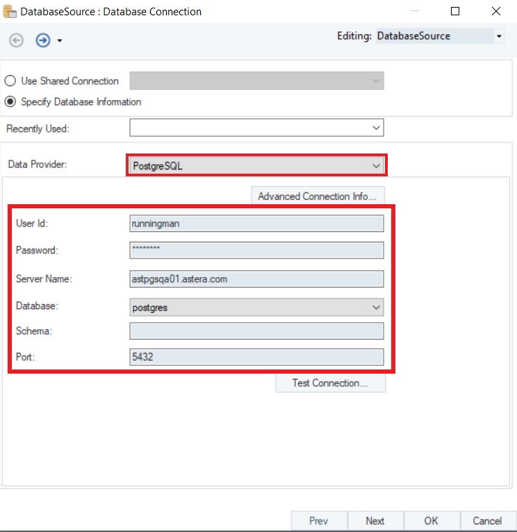 Connecting to PostgreSQL in Astera