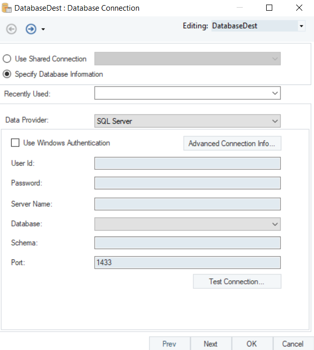 Test Connection to make sure that your database connection is successful and click Next.