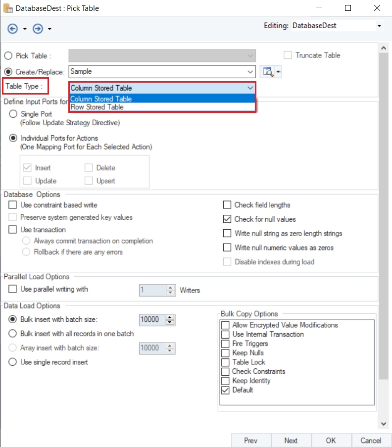 To read more on other different data writing options in a Database Table Destination, click here.