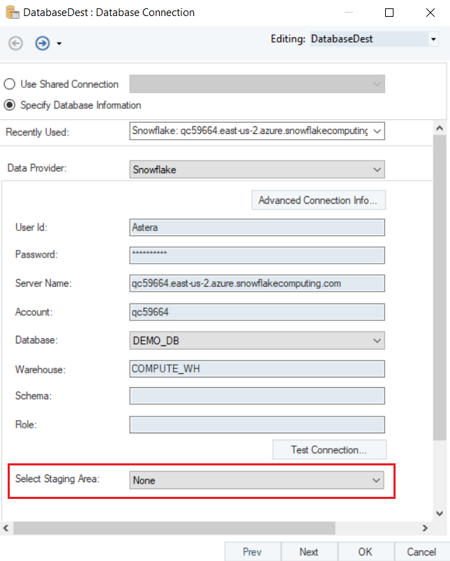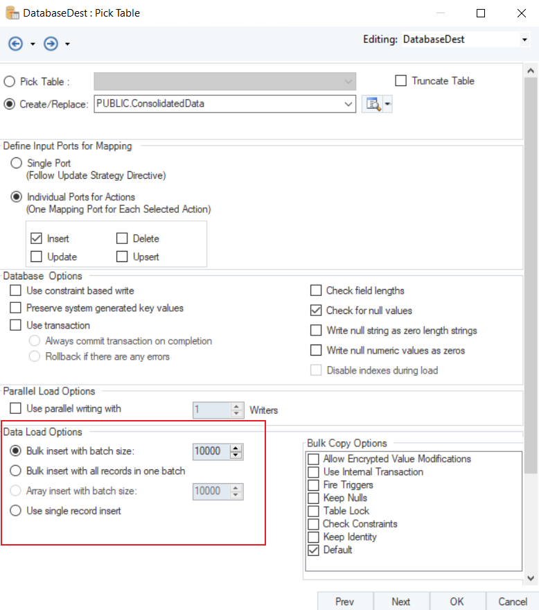 Since we selected the staging area, we will set the Data Load Options as Bulk Insert.