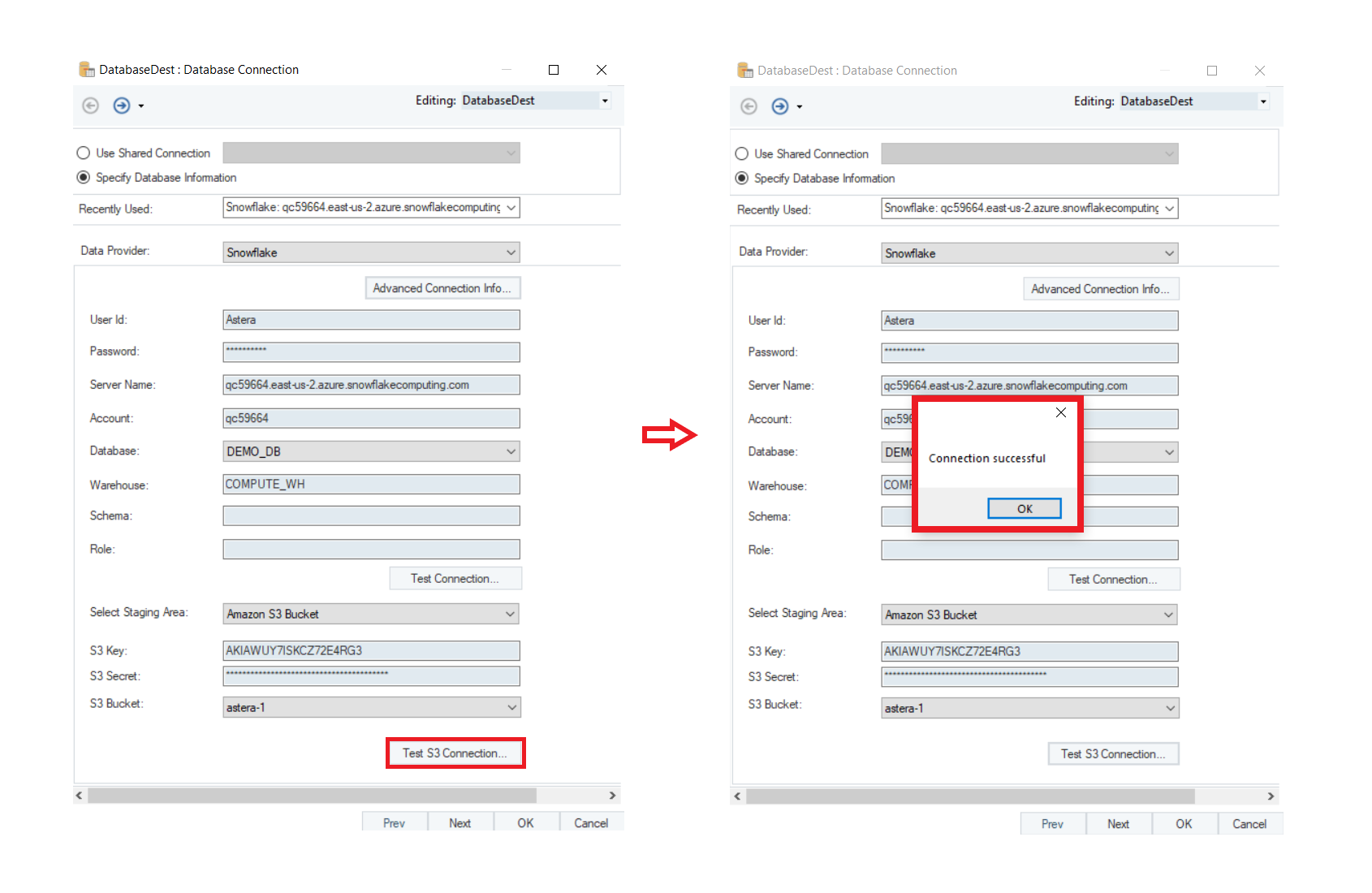 Now, Test S3 Connection to see if the Amazon S3 Bucket has been connected.