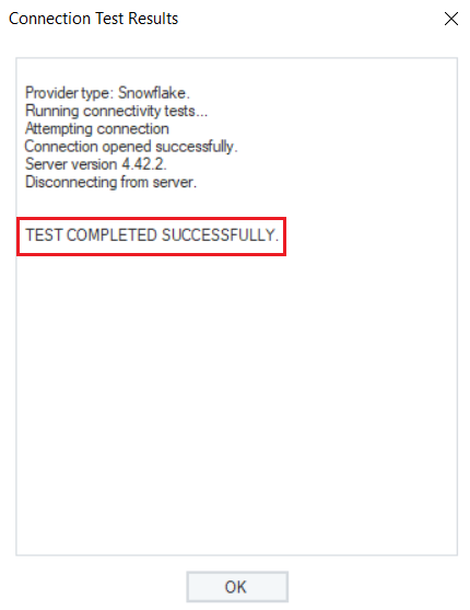 We have successfully configured Snowflake as our database provider for the Database Table Destination object. The data will now be written to the Snowflake database once the dataflow is run.
