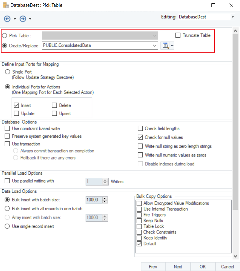 Note: In this case, we will create a new table and name it as PUBLIC.ConsolidatedData, where Public is the schema for the database.