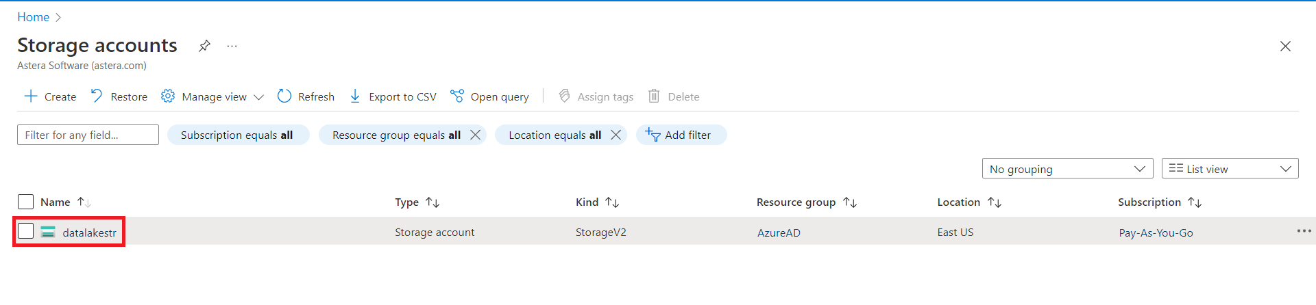 Note: We’ve chosen the datalakestr account in this case.