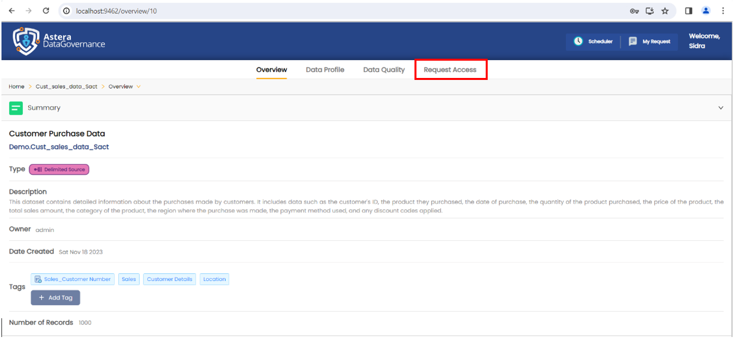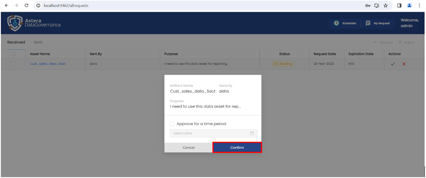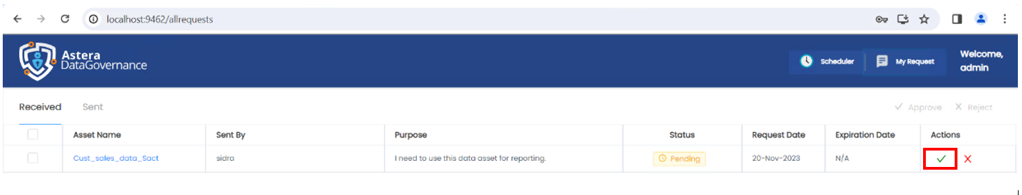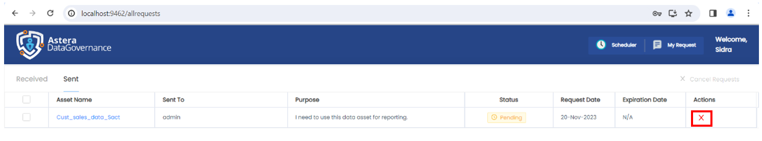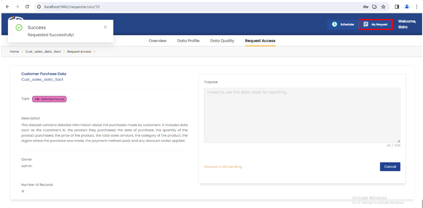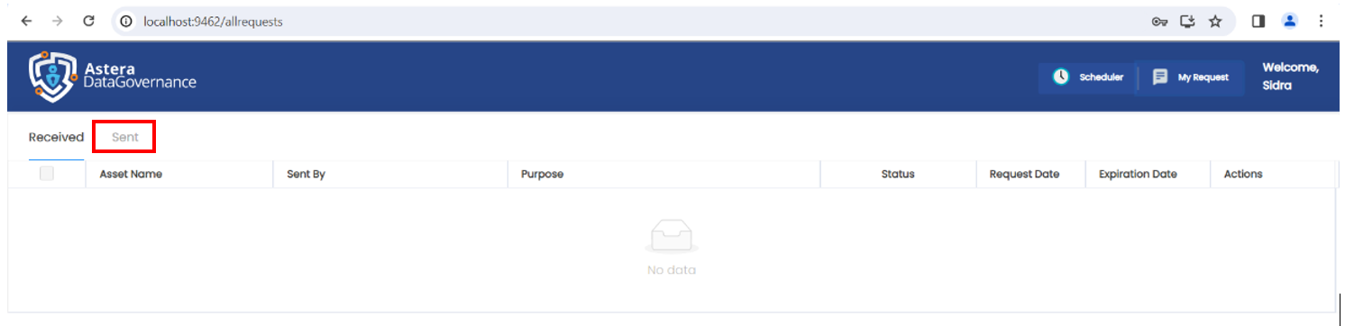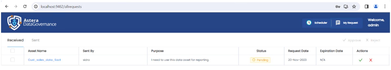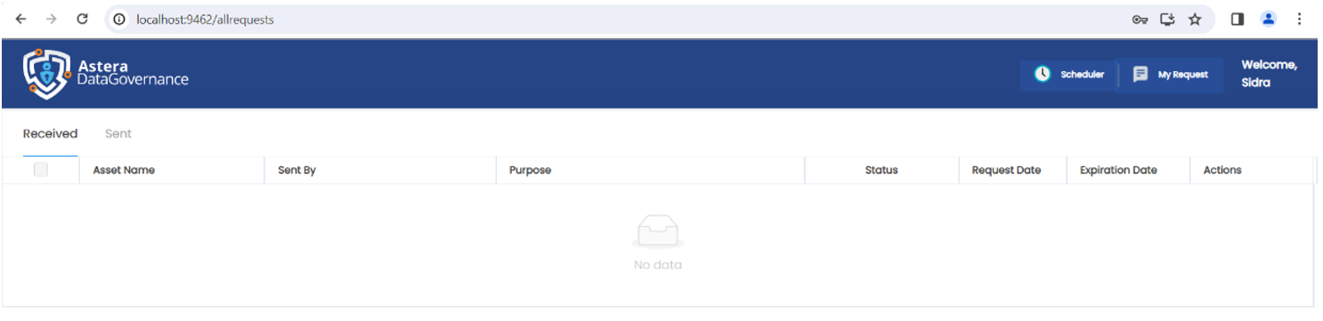1. Log in to Astera's Data Governance platform as admin and navigate to the My Request page.