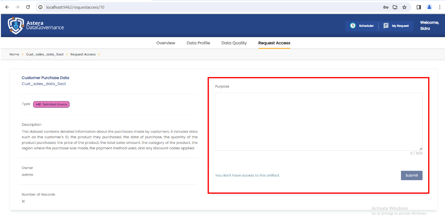 4. Specify the purpose for access and click *Submit*.