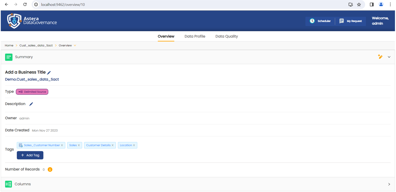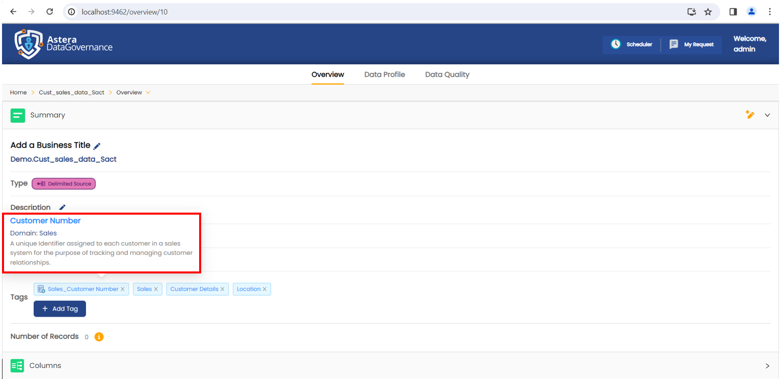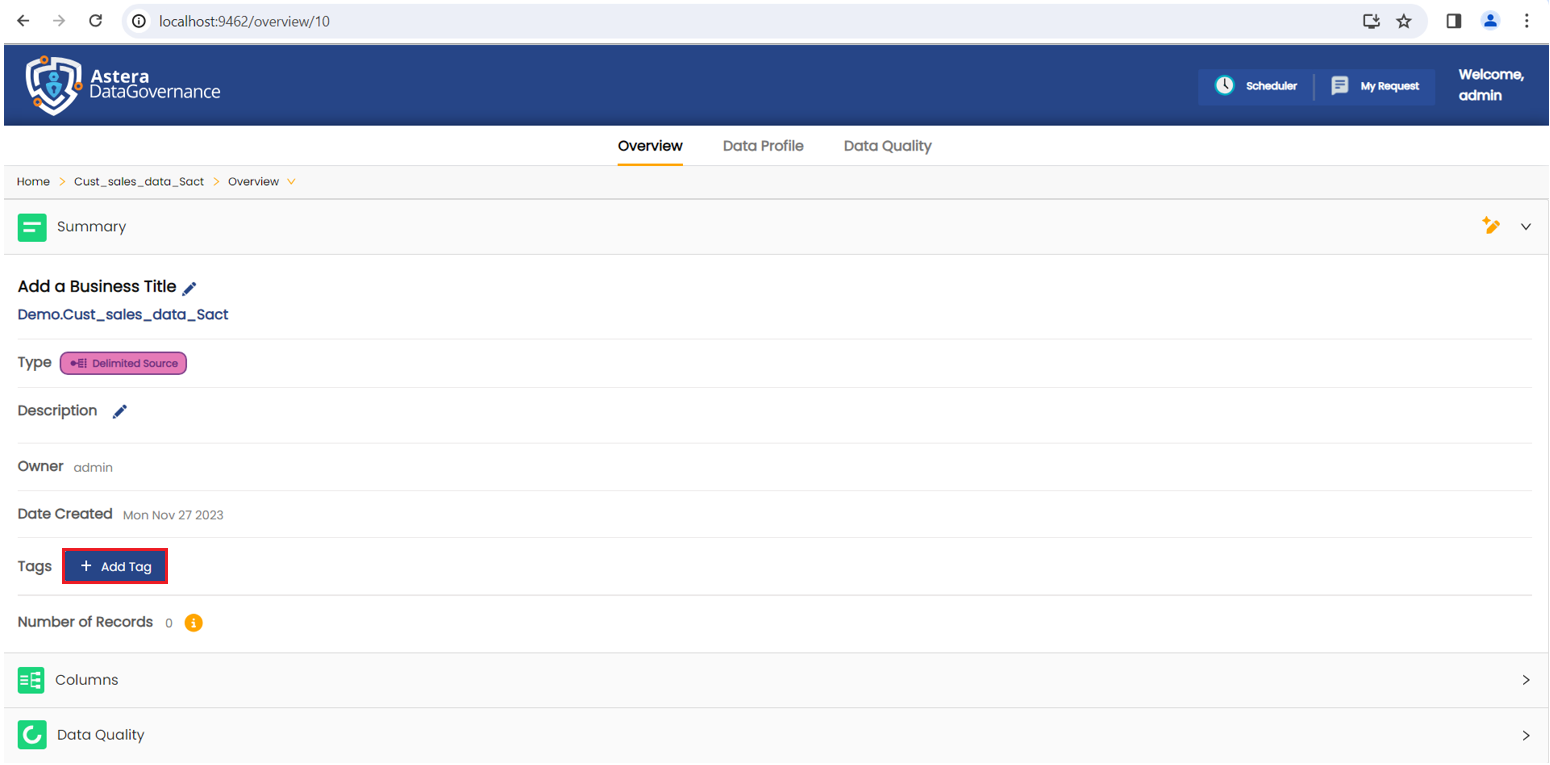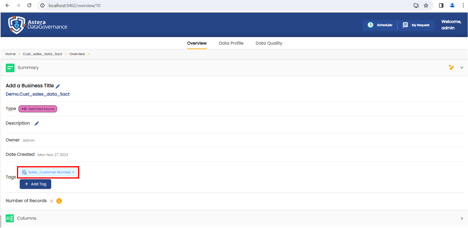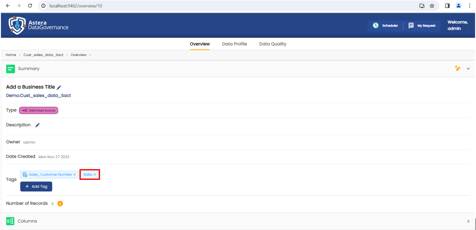 Now that the Tags have been associated with the Data Asset, in the next [article](https://documentation.astera.com/data-governance/modifying-asset-details), we will explore how we can further enrich the asset above.