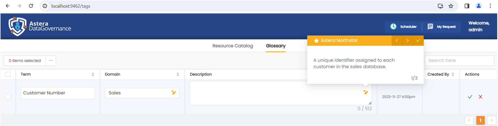 5. Users can view the descriptions associated with the Glossary Tags by hovering over them.