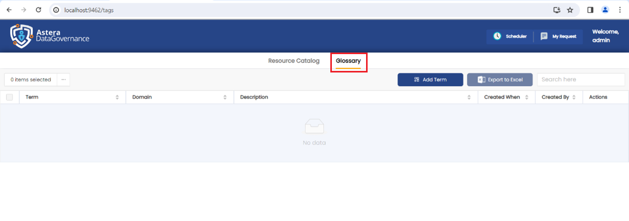 1. On the home page, select the *Glossary* tab located next to the *Resource Catalog* tab.