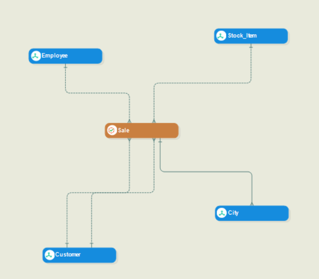 Note: In this case, the entity names Sale is the fact entity, and the rest are dimension entities.