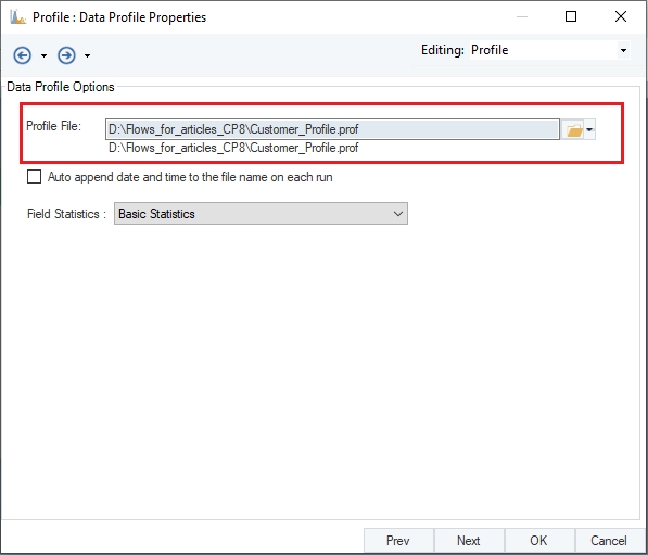 Here we will provide the Profile File path to specify where the profile should be stored.