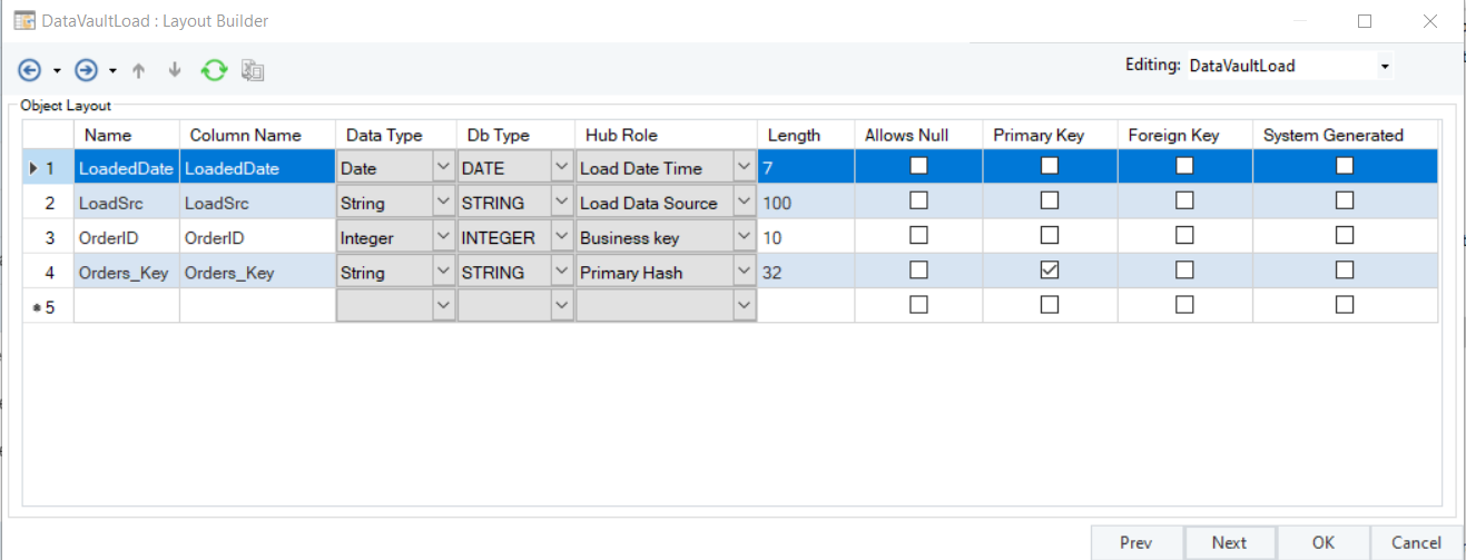 Now, Click OK to close the configuration window. The Data Vault Loader object has now been configured and you will be able to see all fields in the object layout.