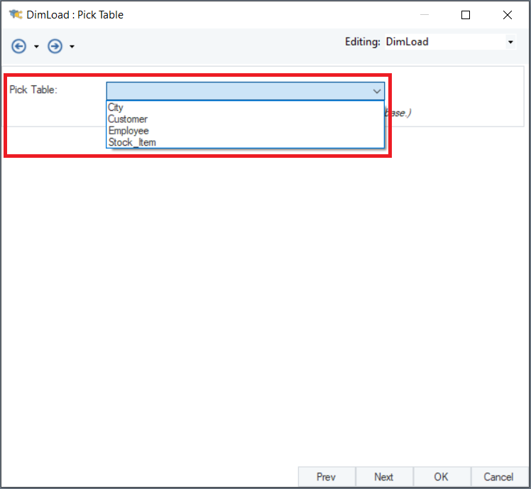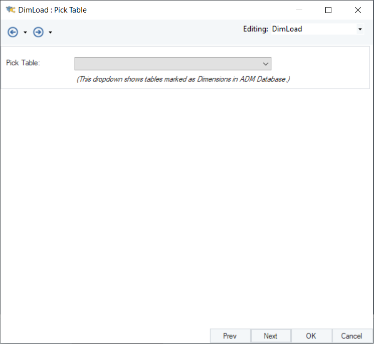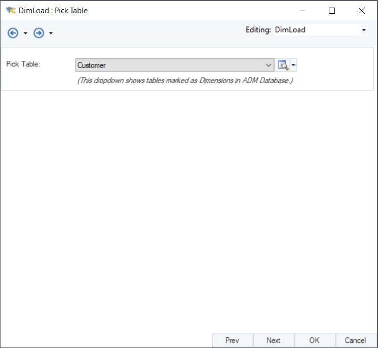 The Pick Table dropdown menu allows you to choose from the dimension entities.