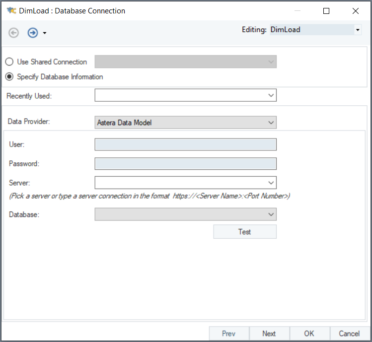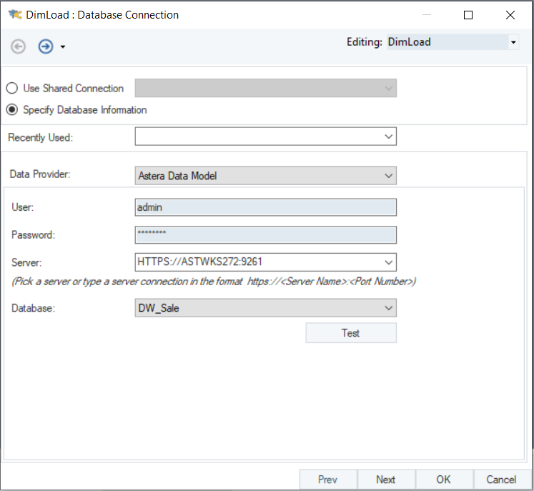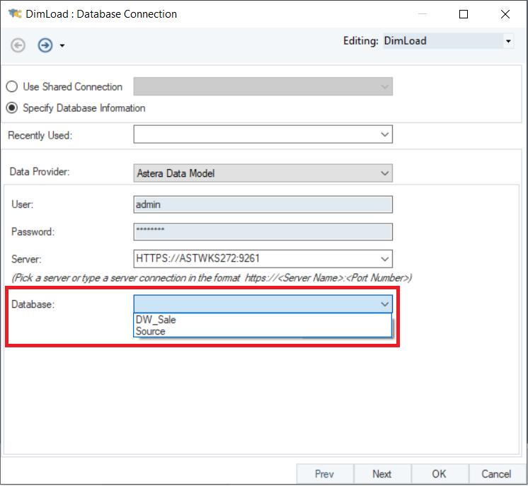 Since the dimension entities are present in the deployed dimensional model, we’ll select Astera Data Model from the list of data providers.