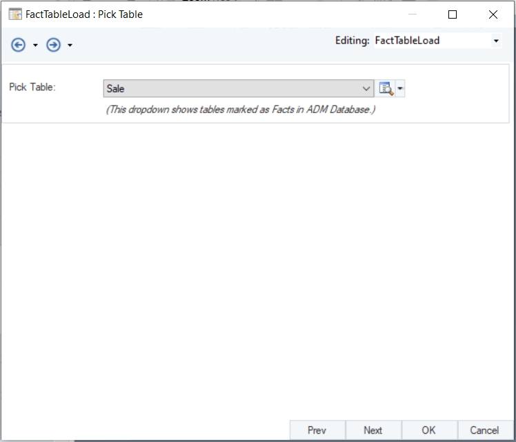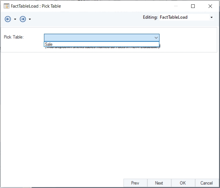In this case, there’s only one fact table, titled Sale, in the deployed dimensional model. Therefore, we’ll pick that table from the menu.