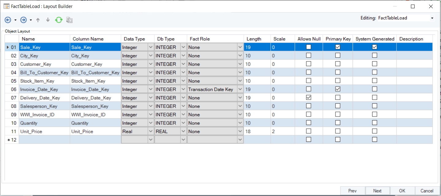 The Fact Table Loader object has now been configured and you’ll be able to see all of the fields in the object layout.