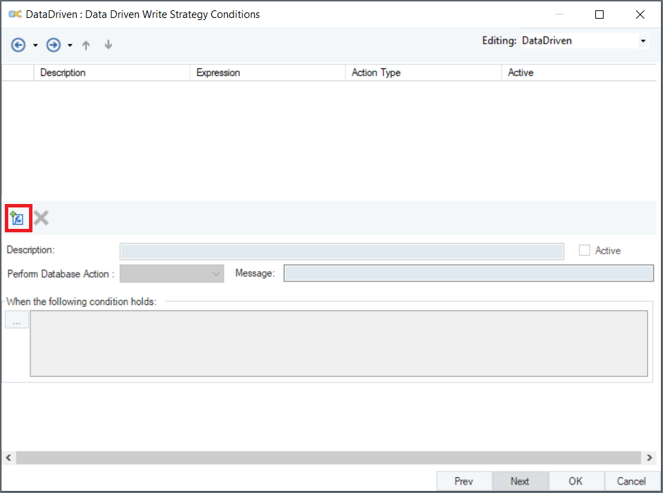 The next window is the Data Driven Write Strategy Conditions window, where you can specify rules to route your data. Click on the fx option to enable the Expression Builder.