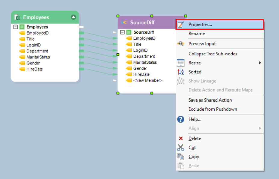 Right-click on the Source Diff Processor object’s header and select Properties.
