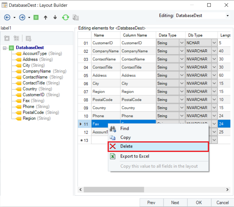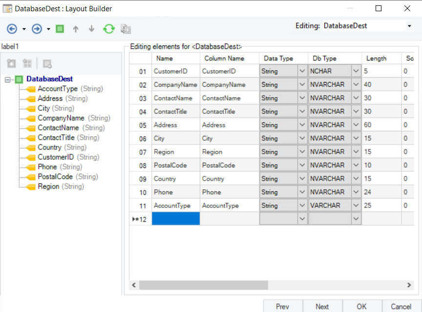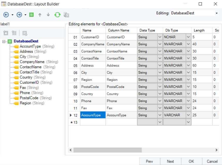 The next window you will see is the Layout Builder. Here, the layout of the database destination file can be modified.