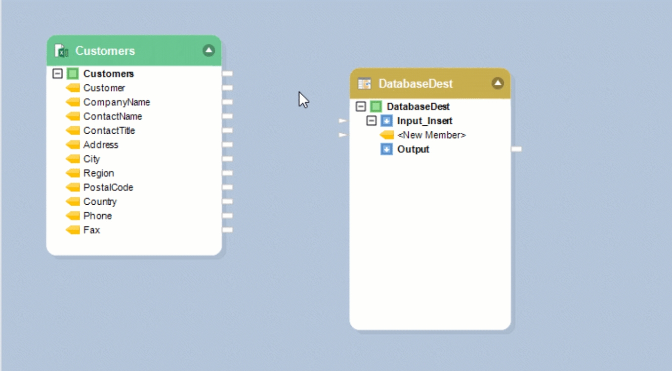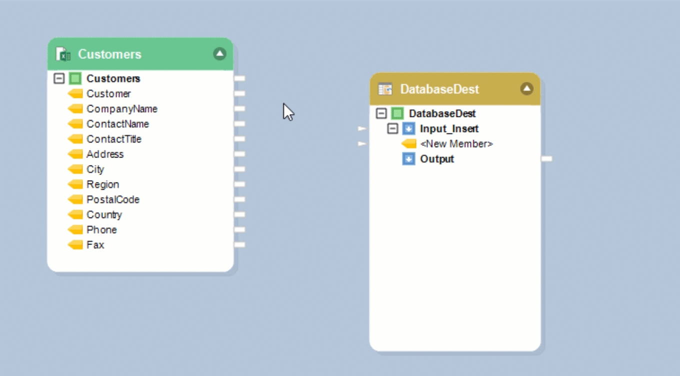 Note: In this case a Customers sample data, coming in from an Excel Workbook Source, will be written to a Database Table Destination.