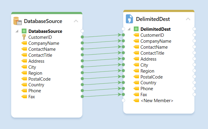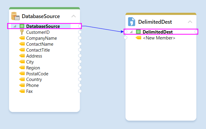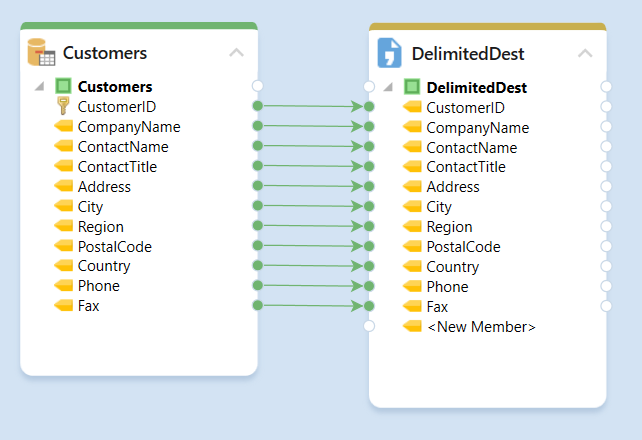Note: In this case a Customers sample table has been used from a Database Table Source to write to the Delimited File Destination.