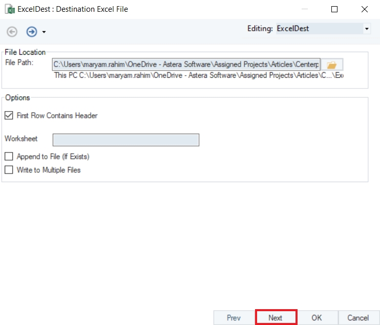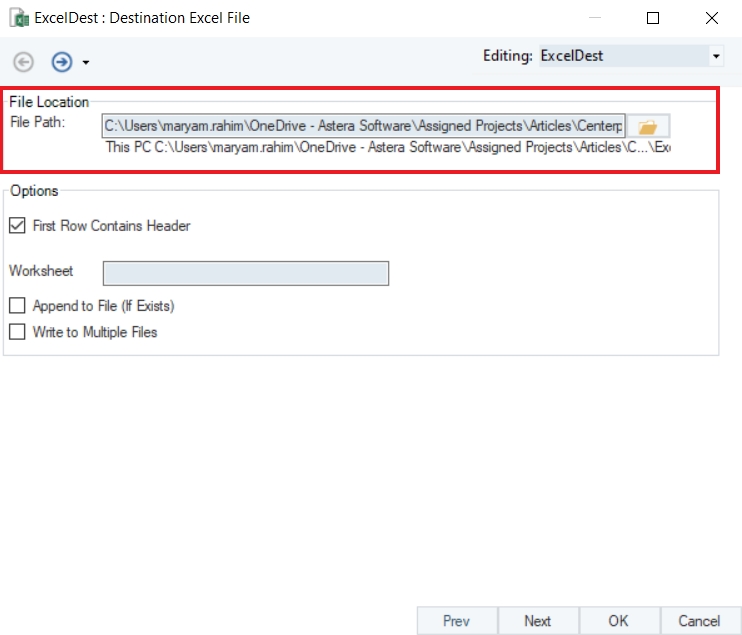 The Excel Workbook Destination object in Astera provides the functionality to write data to Microsoft Excel workbooks. An important thing to note here is that, it is not necessary to have Microsoft Excel installed on the machine for the excel destination object in Astera to work. The feature gives you the option to specify the worksheet and the starting cell where the data write begins.