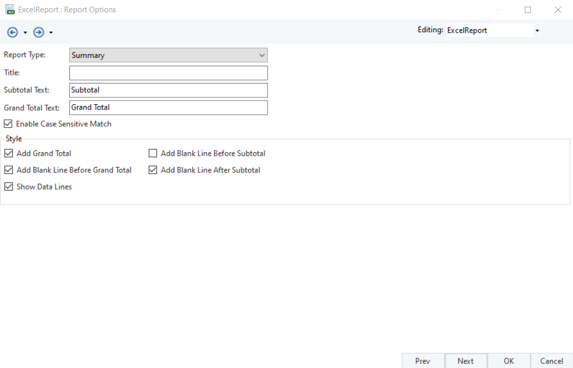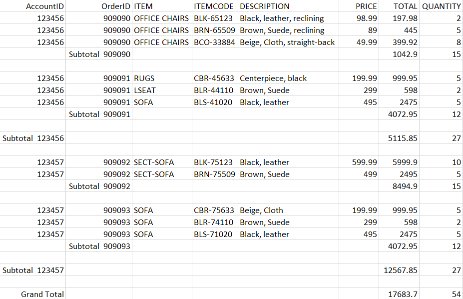 Note: If you want to see only the subtotals and the grand total you can uncheck the Show Data Lines option in the Report Options wizard. This will display only the summarized totals without individual records.