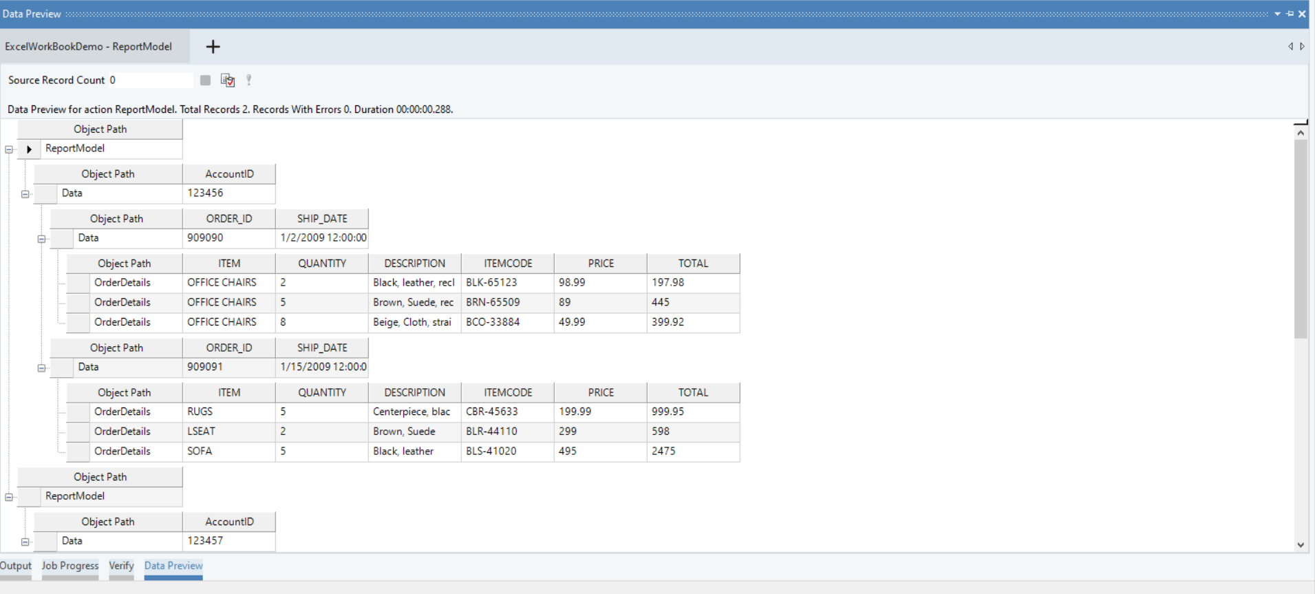 Configure the source object and place it onto the designer next to the Excel Workbook Report object.